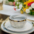 Do not use in Microwave or Dishwasher (due to the Gold)